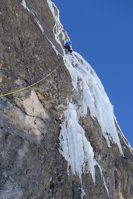 Zuita Patavina, Civetta, Dolomiti: Alessandro Baù in apertura sul ghiaccio sottile di L5