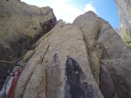 Il primo tiro di 'Via degli Istruttori', Torre del 50°, Alpi Lepontine (Alessandro Ceriani,...