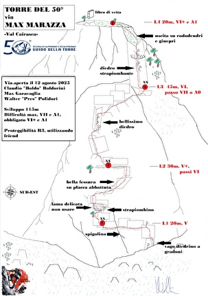 La relazione di 'Via degli Istruttori', Torre del 50°, Alpi Lepontine (Alessandro Ceriani, Max...
