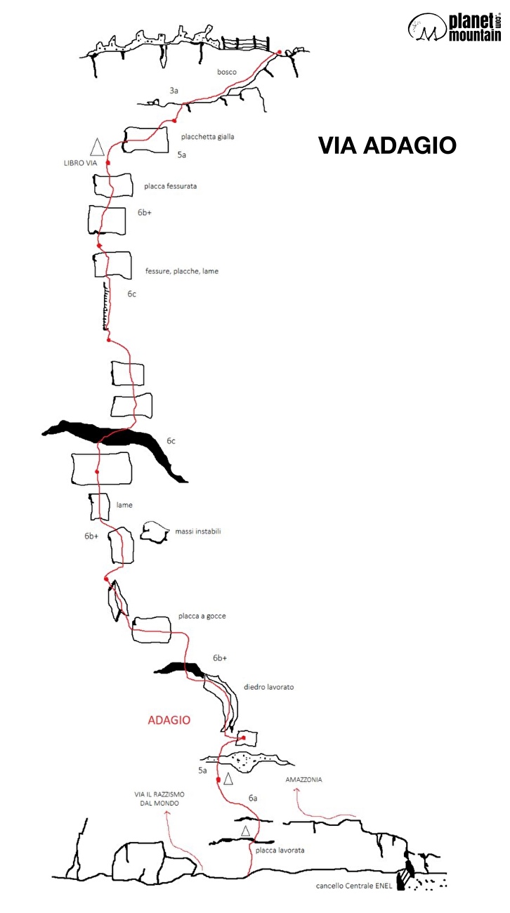 L4: 30m, 6b+. Placca lavorata con bellissime lame verticali in uscita.