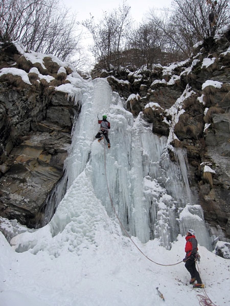 Cascata del Wold o Alpe Campo: Sulla 1a lunghezza della Cascata del Wold o Alpe Campo, Valsesia (arch. E. Bonfanti)