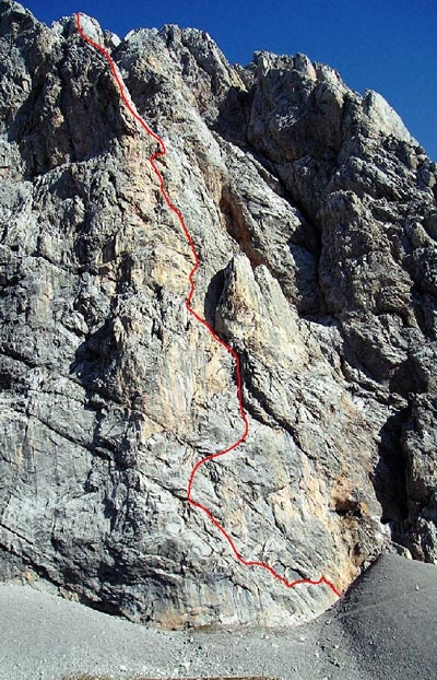 Bella via con difficoltà sostenute, roccia eccezionale tranne qualche breve tratto e la metà alta dell’ultimo tiro. Via sempre ben attrezzata a spit con numerose possibilità per “aiutarsi” nelle parti più impegnative.