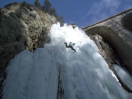 Bellissima cascata posta all’interno di un canale in parte incassato nella roccia. La linea di salita, molto bella, dà il piacere di arrampicare su una vera roulotte e presenta alcuni tratti davvero interessanti. Assolutamente da raccomandare, inoltre, anche per il panorama sull’Engandina, per il facile accesso e per le condizioni che, di norma, la rendono percorribile anche a fine novembre. Le soste sono a spit.