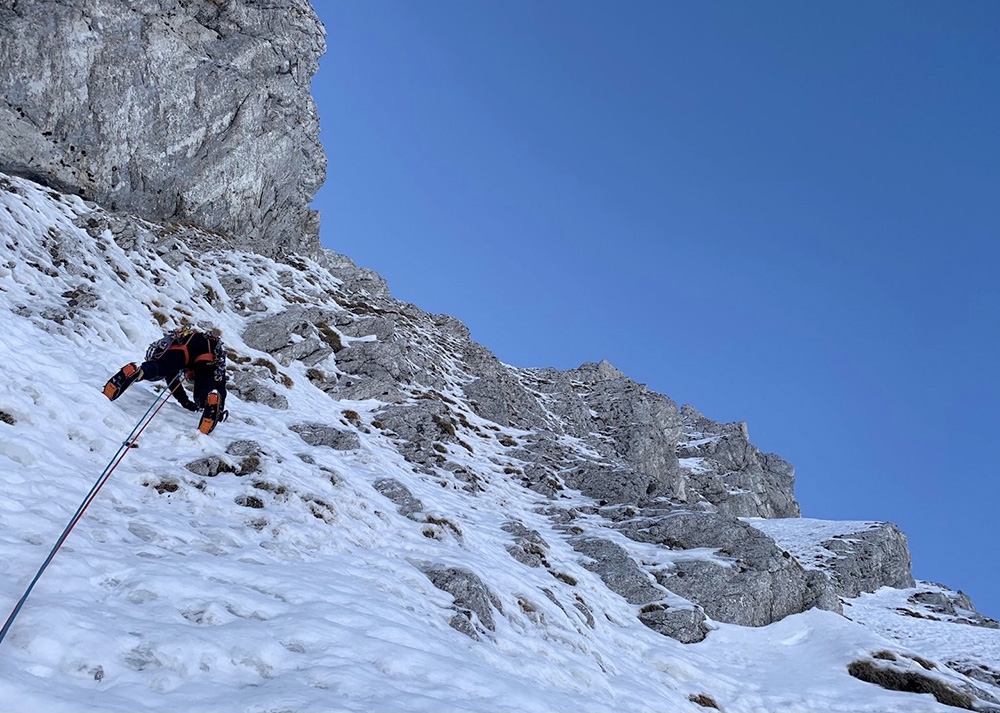 Come per la gran parte di questo genere di itinerari è necessario che dopo una fase abbastanza lunga di maltempo da ovest segua una fase di alta pressione che stabilizzi il manto nevoso e che ripulisca dalla neve non trasformata le rocce, altrimenti proteggersi e progredire risulta troppo difficile.
