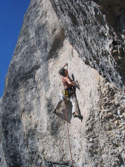 Sulla splendido calcare "bucherellato" della parete sud della Cima d'Auta ecco un altro gioiello questa volta firmato Manolo e Omar Genuin. Secondo Manolo: "La via è più o meno un grado più impegnativa della vicina Spirit. Tecnicamente, fisicamente e mentalmente, non credo sia meno bella ma questo forse sarebbe un giudizio troppo soggettivo… quel vago grado in più credo valga anche per l’obbligatorio; per gli altri ormai preferisco quelli della birra almeno sono incontestabilmente scritti sull’etichetta”.