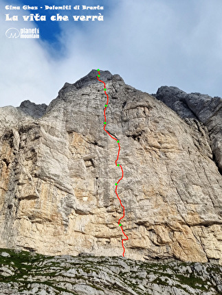 Via alpinistica (portare una serie di friends dal 0.50 al 1.80 Totemcam) con soste rinforzate a fix e/o clessidre.