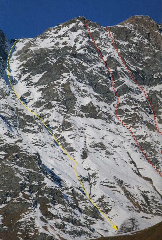 Salita tecnica, più impegnativa ma meno continua del Macrocouloir. In condizioni generalmente in primavera. Utili chiodi da roccia.