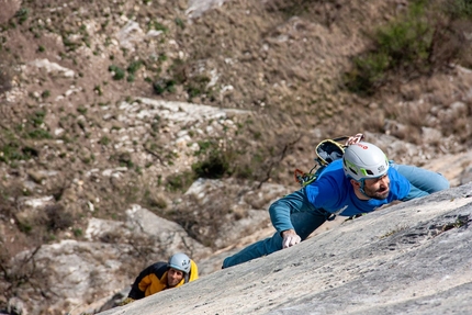 Lorenzo d’Addario, Nicola Tondini, apertura dal basso 2018. Prima rotpunkt dei singoli tiri il 20 e 21/04/2021