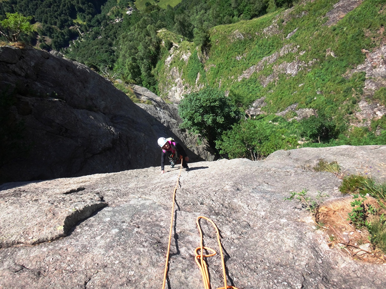 Gli ultimi metri del primo tiro di 'Il Gatto e la Volpe', Pinnacolo di Maslana, Valbondione (Cristina Oldrati, Matteo Rivadossi, 29/06/2025)