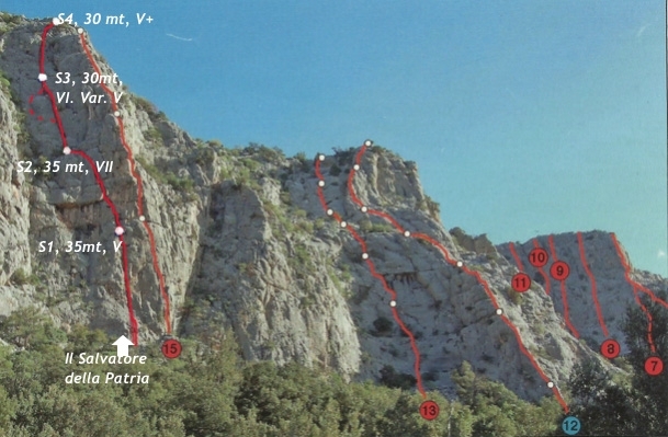 Il salvatore della Patria si trova appena a sinistra dello sperone di Alpinisti Efficienti sul Doloverre di Surtana ed è stata aperta da Malcu Pinna con Marco Corda e Luigi Gambella . Si sviluppa per 130 metri con difficoltà sino al VII grado. Sono state usate solo protezioni veloci.