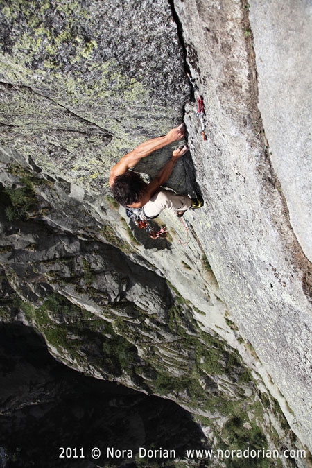 La strategia del ragno: Sul diedro della sveglia, Strategia del Ragno, Ancesieu, vallone di Forzo (ph Nora Dorian)