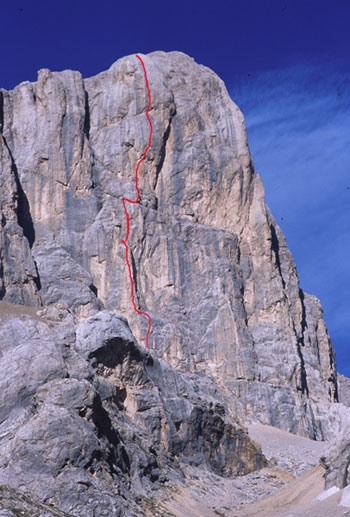 Aperta da Rolando Larcher e Roberto Vigiani nell'estate 2000 in 4 giorni di arrampicata rigorosamente dal basso, la via supera un' incredibile linea che borda il pilastro Cristina nella parte bassa e supera nel centro il Pilastro Lindo nella parte alta. La via segue una serie di placche verticali e bombamenti strapiombanti con un'inclinazione decisamente differente dal resto della Sud, con un'atletica arrampicata su roccia da sogno, quasi sempre lavorata a buchi netti.