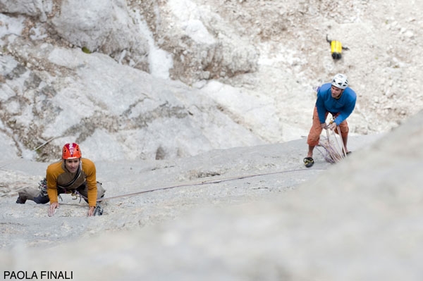 Menhir: Nicola Tondini e Ingo Irsara su Menhir, Sass dla Crusc (ph Paola Finali)
