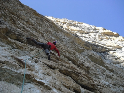 NB: E' sconsigliato provare a scendere in doppia a causa degli strapiombi presenti sulla via. Ritirata molto problematica dopo il sesto tiro.