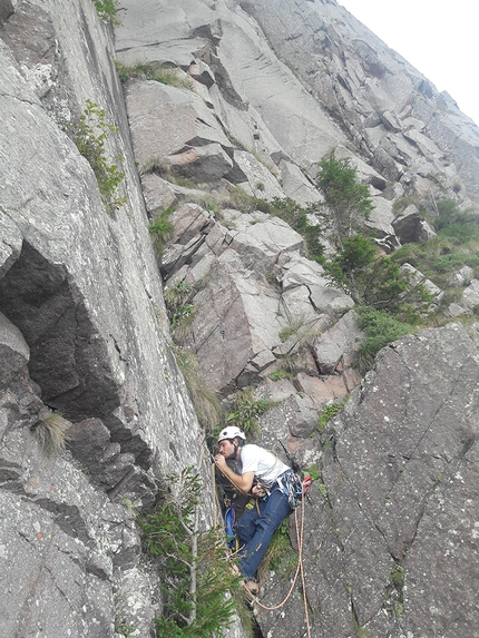 L’attacco è in comune con il Gran Diedro, una targhetta sgangherata alla base e i primi fix ben visibili rendono inequivocabile la partenza.