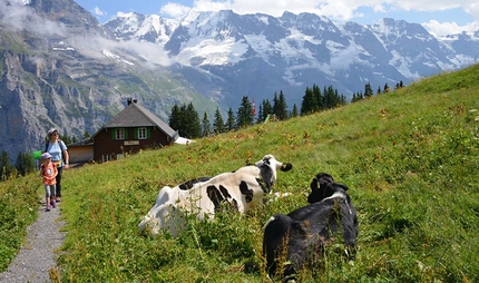 Passeggini e parchi giochi la passeggiata per Mürren è adatta a anche a passeggini normali, mentre la Passeggiata Floreale passa parte su sentiero.
