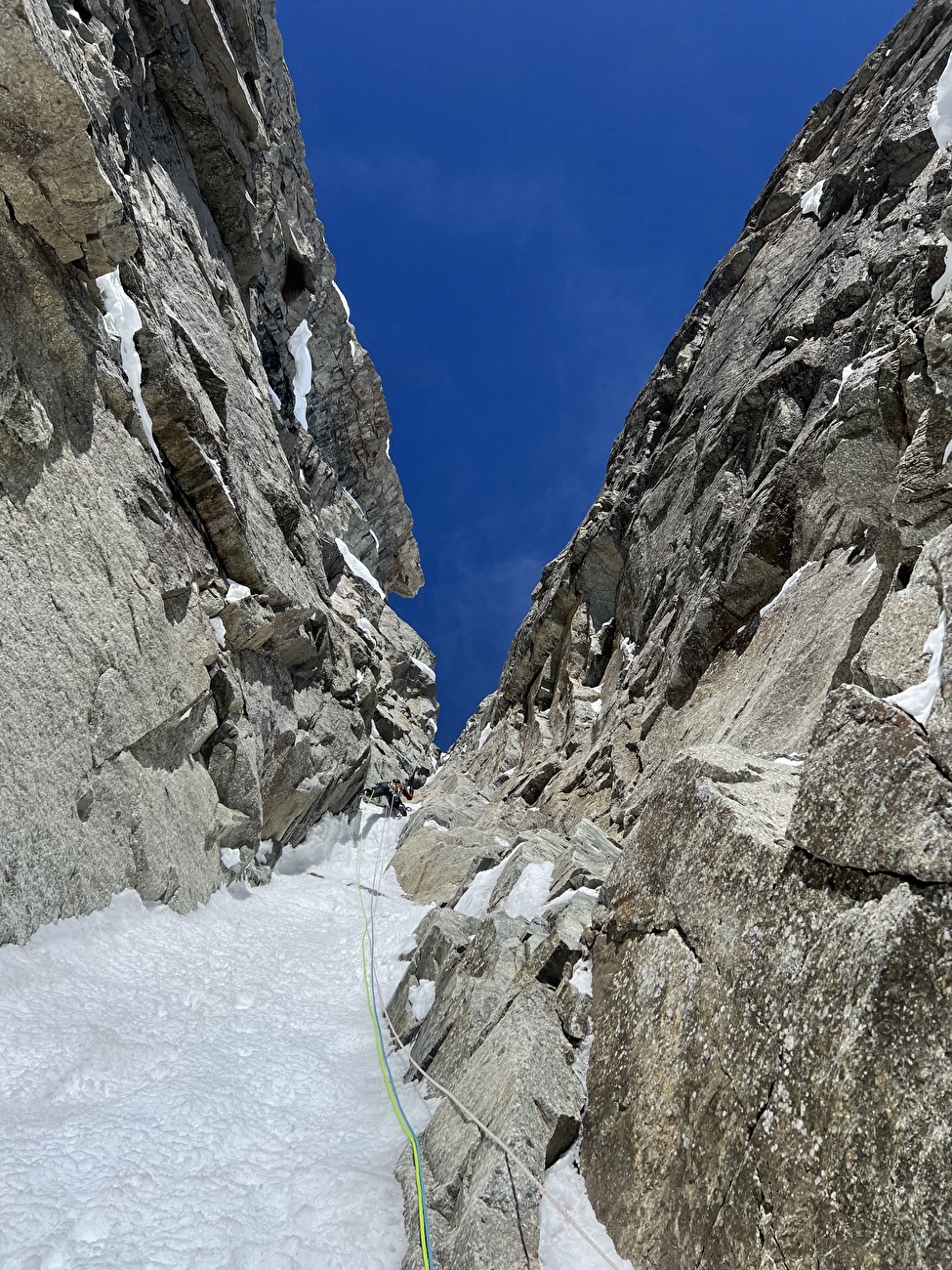 La via attacca circa 50m a destra della storica Bonatti-Mazeud.