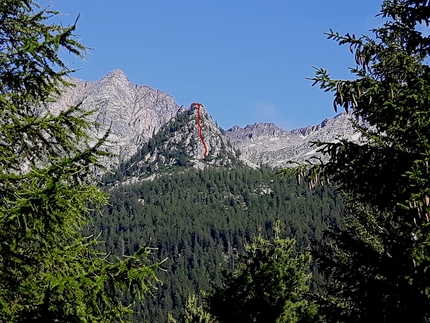 L4: Lo Specchio - Date i Friend al secondo di cordata, non servono e avventuratevi su un granito chiaro, luccicante. Inizialmente su una placca con piccole prese e spalmi, il grado si presenterà sul muretto soprastante, con un passo per niente intuitivo. È possibile fare una sosta intermedia in cima al tiro (per non far tirare le corde ed osservare il secondo) e poi scendere in breve alla sosta della lunghezza 5. 6c+