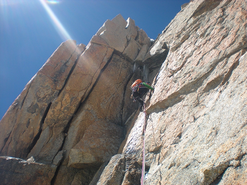 Pilone Centrale del Frêney - Via classica (Bonington): Il diedro impegnativo a metà itinerario. Foto Enrico Paganin