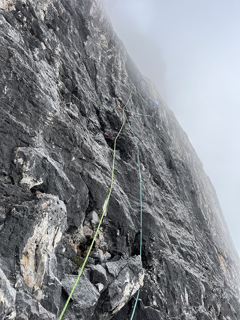 In apertura sul quinto tiro di 'Plus Ultra' allo Spallone dei Massodi, Dolomiti di Brenta (Daniele Bolognani, Davide Dallago, Walter Endrizzi 07/09/2024)