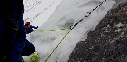 In doppia lungo la via di salita.