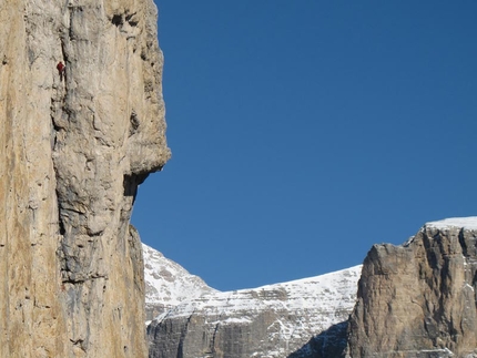 Bella via aperta nell'inverno 2011/12 da Manuel Stuflesser e Martin Riegler tra le vie Zeni e Non ci resta che piangere. Il terzo tiro era stato aperto da sconosciuti.