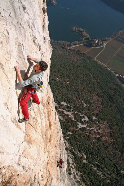Ultima fiamma: Rolando Larcher sale il 7° tiro di Ultima Fiamma, Piccolo Dain, Valle del Sarca.