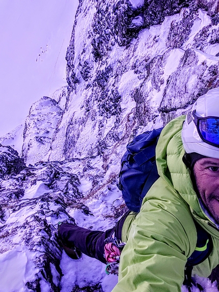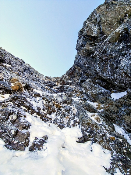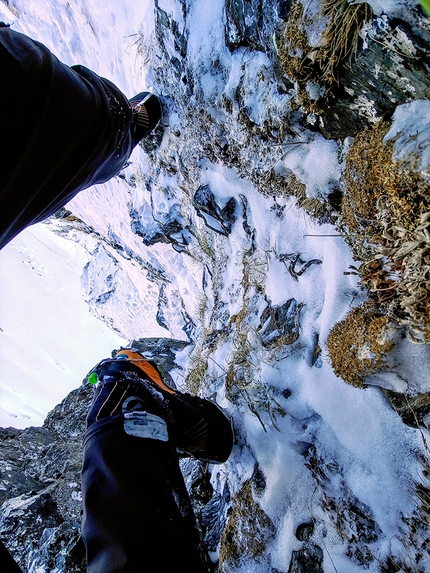 Bella linea di misto sulla parete nord del Pizzo Trona, aperta in solitaria il 12/01/2022.