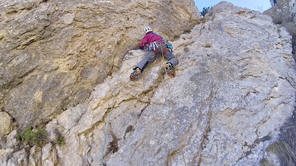 Via Xena è una salita di stampo moderno su terreno misto prevalentemente roccioso aperta dal basso con uso di protezioni veloci e fix che valorizza una facciata rocciosa che, data la qualità della roccia non avrebbe ammesso nessun altro tipo di ascesa se non artificiale. Xena richiede un’arrampicata molto cauta e fisica, considerato il comodo avvicinamento e lo sviluppo moderato, sarà senz’altro un ottimo allenamento per coloro che vorranno affrontare vie di misto più lunghe. La via entra in condizione dopo abbondanti precipitazioni seguite da temperature molto rigide, soltanto così le fessure potranno coprirsi di neve e ghiaccio e le zolle erbose indurirsi al punto di diventare stabili.