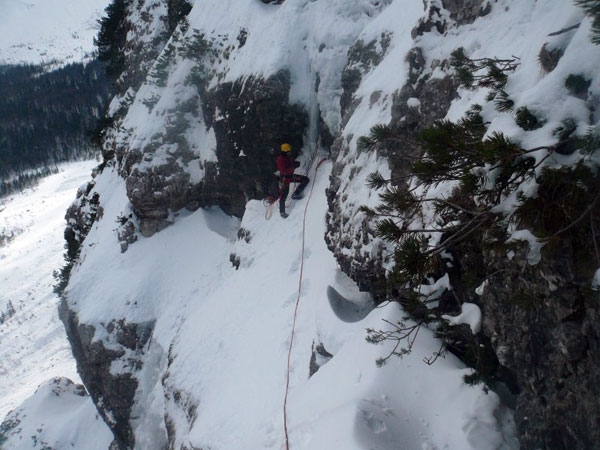 Zadnji slap - Sveca za fula: Su Zadnji slap prima del traverso verso Sveca za fula - M.te Prednja Glava (arch. A. Gamberini)