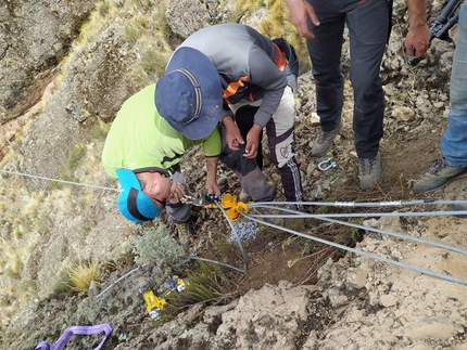 Dopo una serie di incontri organizzativi, nel maggio scorso sono stati inviati a Peñas due container di materiale: cavi, ancoraggi, attrezzi e tutto il resto. I lavori sono cominciati a metà novembre: Emilio Malugani e Massimiliano Gerosa, guida alpina, sono scesi in Bolivia e in un paio di settimane, aiutati dai giovani della missione, hanno completato buona parte del parco. Che di sicuro è unico nel paese, davvero bello e conforme in tutto alle norme di sicurezza europee. Ma attenzione: laggiù non ci sono boschi e il percorso si svolge completamente su roccia, in una sorta di canyon ricco di strutture articolate che si sono prestate alla perfezione al progetto. «In questo modo – spiega Malugani – abbiamo dato la possibilità ai frequentatori di cogliere appieno l’essenza del luogo, dove ci si muove in massima sicurezza assicurati a una linea vita continua. Il percorso porta a una sommità panoramica: da lì, dopo aver contemplato la cordigliera, si scende con una tirolese molto esposta e divertente verso il secondo dei tre settori del parco».