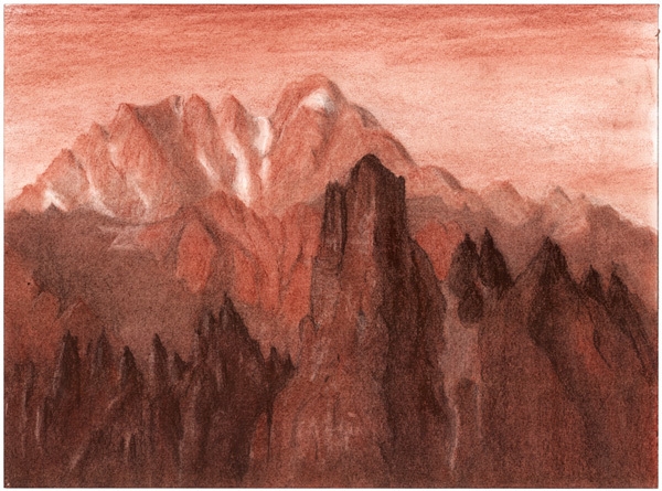 Torre Siorpaes - Sanguigna, su Canson Mi Teintes gr.160 cm 40,6x30,5 - autore: Riccarda de Eccher