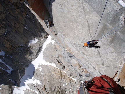 "Con Cyrille Berthod avevamo appena finito il nostro corso di Guida Alpina. Così, stanchi di correre da un corso all'altro, abbiamo deciso che questa stagione sarebbe stata quello del nostro primo viaggio in Patagonia. Eravamo pronti ai lunghi periodi di brutto tempo, alle attese al bar di El Calafate, ai lunghe partite a carte in tenda, sperando nel bel tempo e che il vento calasse di intensità. Ma poi quando dall'aereo abbiamo visto quelle indescrivibili torri di granito che si stagliavano contro il perfetto cielo blu della Patagonia, ci siamo domandati dov'era il brutto tempo che tutti ci avevano promesso? 36 ore dopo il nostro arrivo in Argentina eravamo in cima al Fitzroy!