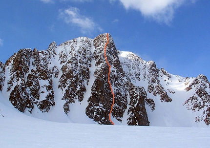 "Sunny couloir" III+/M, 600m; G. Kresal, B. & K. Zupanc, 18.04.07