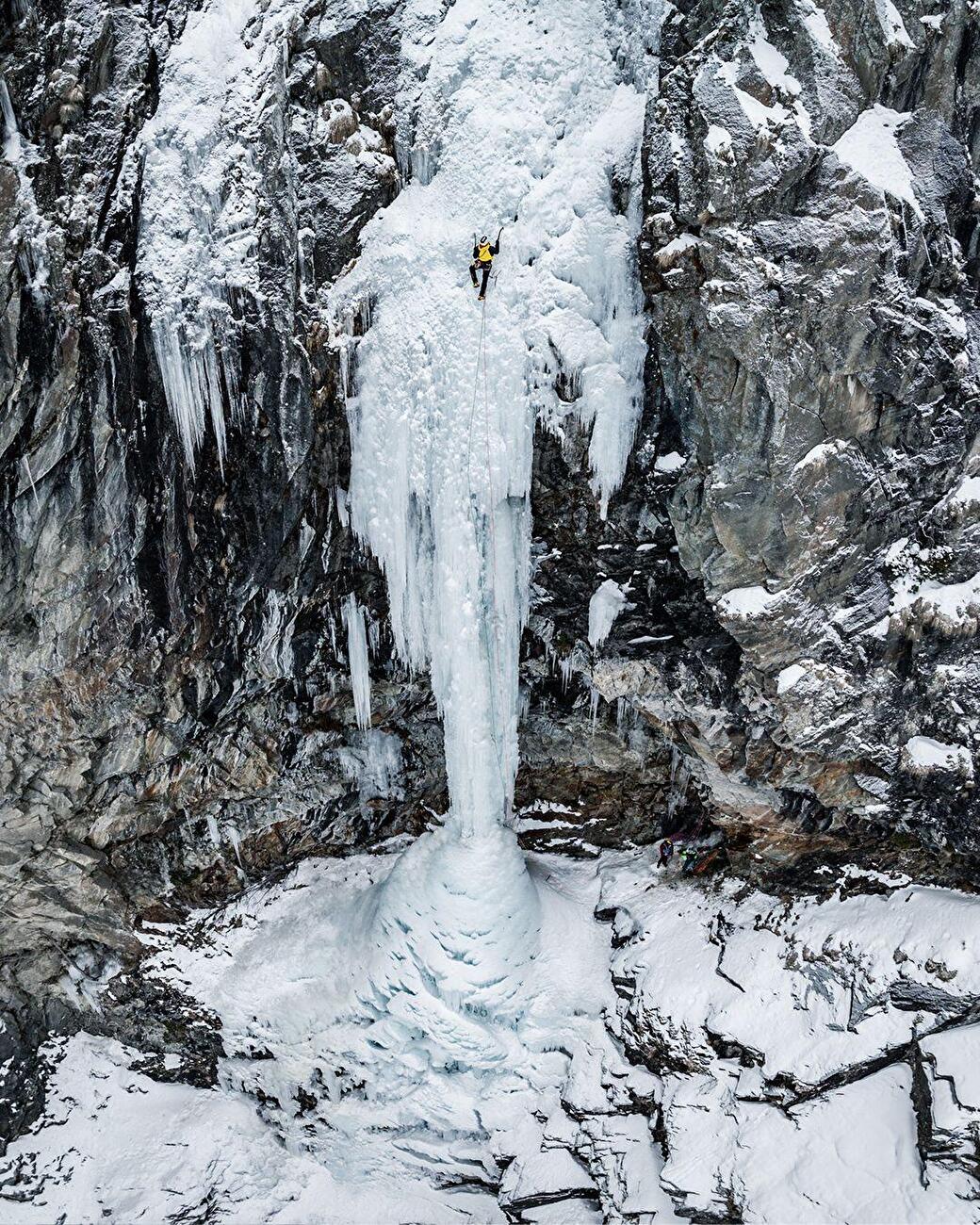Il cambiamento climatico rende la pratica delle cascate di ghiaccio sempre più complessa. Le stagioni sono più brevi e le condizioni cambiano rapidamente: una cascata può essere fattibile un giorno e pericolosa quello dopo. Le variazioni di temperatura influenzano le tensioni interne del ghiaccio e la sua solidità, rendendo necessaria una lettura attenta e costante. In questo contesto, chi pratica lo sport deve essere paziente, saper cogliere l’attimo giusto e, allo stesso tempo, avere la capacità di rinunciare quando le condizioni non lo consentono.