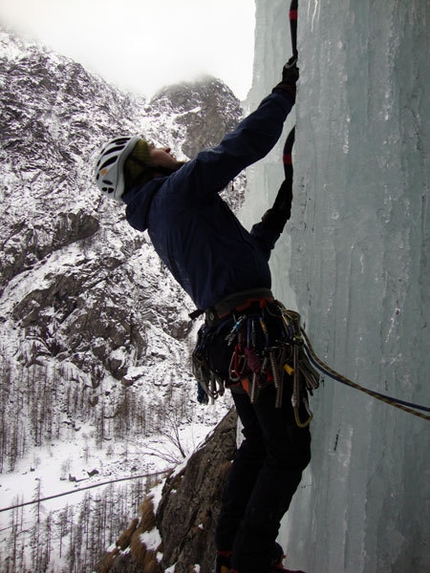Spesso per le prime delle cascate c'è un po' di incertezza. Saranno state già salite? è la domanda che molte volte si pone chi le affronta. Questo naturalmente vale soprattutto per le colate più defilate e per quelle che con più difficoltà si formano, anche perché di questo tipo di cascate quasi sempre non si hanno notizie certe. E' il caso della Cascata delle Miniere in Valle dell'Orco (250m, V/3+ - 4/R) e di Ciao TFR. Entrambe salite da Marco Appino insieme ad Umberto Bado (la prima) e con Mauro Appino e Renzo Vottero (la seconda).