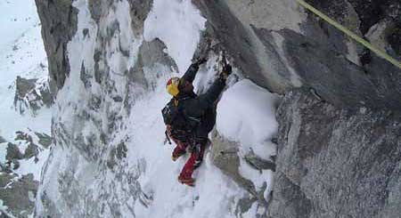 ![]() Prima via nuova su una parete inviolata per il team della spedizione Up project, impegnato nellarea Chogolisa Glacier (Baltoro Pakistan). Gli specialisti di ghiaccio e misto, Fabio Salini, Ezio Marlier e Hervè Barmasse hanno salito "Fast And Furious", questo il nome del nuovo itinerario, di 700 metri di dislivello, con difficoltà di V° come impegno globale, 4° su ghiaccio e M6 di misto. La via sbuca sulla cresta sommitale a pochi metri della cima che è rimasta però ancora inviolata. In questi giorni lavventura continua, con Brenna e company impegnati sullo Scudo del Chogolisa per il progetto di via sul pilastro FAST AND FURIOUS Prima via nuova della spedizione UP trip one. Ad una settimana dal nostro arrivo nel Chogolisa Glacier nasce la prima via nuova di questo UP trip one.Salini, Marlier e Barmasse partono all'alba dalla tendina montata sul ghiacciaio sotto la cima inviolata. Dopo aver risalito un lungo e ripido canalone nevoso si legano alla base della bellissima linea di misto e ghiaccio che avevano individuato nei giorni scorsi. Una linea "moderna", intesa come linea che solo un occhio da scalatore di misto può riuscire a concepire. Roccia alternata a neve e stretti budelli di ghiaccio, il tutto da superare con piccozze e ramponi. I tre si dividono la salita per 2 tiri a testa che saranno tutte lunghezze di 60 metri e anche oltre. Dapprima è il turno di Ezio che supera due tiri con un tratto verticale nel secondo tiro su ghiaccio "friabile" e poco proteggibile. Segue Fabio che incontra il tratto di misto più difficile della via nuova, superato in dry tooling con difficoltà di M6. L'ultima tirata fino alla cresta finale è invece di Hervé che dopo un primo salto di ghiaccio e un pendio carico di tanta neve fresca riesce a spostarsi verso destra aggirando l'impraticabile muro terminale e sbucando in alto sulla cresta a circa 5500 metri, dopo quasi 9 ore di scalata solo per la goulotte vera e propria. Sulla cresta sta arrivando il brutto tempo ed un po' di nevischio che per fortuna dura solo una mezz'oretta. I tre decidono quindi di cominciare le calate lungo la via salita senza toccare il punto più alto dei gendarmi rocciosi sommitali. Per cui difficile via nuova ma cima ancora inviolata per pochissimi metri. Ci va di specificarlo. Il rientro dei tre al campo base avviene intorno alle 18. Alla sera in tenda mensa si festeggia con il secondo cartoncino di vino, alcool che utilizzaremo per brindare solo in caso di vie nuove e compleanni. Un salutone da me e dai "mistaioli" che ora sono in tenda a riposare per bene. "FAST AND FURIOUS": dislivello: 700 metri difficoltà: grado V impegno globale, grado 4 su ghiaccio e M6 di misto. Primi salitori: Fabio Salini, Ezio Marlier, Hervè Barmasse (giugno 2005)