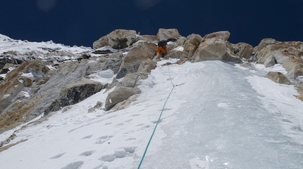 Kaltenbrunner e Göttler hanno raggiunto la cima in condizioni perfette con sole e totale assenza di vento. Un bel regalo, del tutto meritato dopo aver sopportato il necessario acclimamento, un primo tentativo andato a vuoto e soprattutto un periodo con meteo non proprio felice. Il secondo tentativo, quello della cima, è partito il 14 maggio con la salita fino al Campo 2 ed è proseguito il giorno successivo fino ai piedi del pilastro che caratterizza la via. Da qui era in programma il balzo verso la vetta il 16 maggio, ma in base alle previsioni meteo fornite da Dujmovits (impegnato in quel momento in un tentativo all'Everest) i due hanno preferito aspettare un giorno e hanno salito il difficile pilastro fino a quota 7250m, dove hanno bivaccato. "Dopo una salita lunga, ripida ed impegnativa ci sentivamo stanchi" scrive Kaltenbrunner "Gli zaini pesanti, fare sicura in continuazione, rimanere concentrati – a questo punto 'sentivamo' ogni metro di salita".