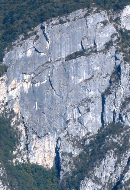 Siamo andati a ripeterla, per vedere, capire, giudicare e provare a divertirsi. Le calate riattrezzate di recente con diverse lunghe doppie ci depositano alla base. Erba, piante, rovi, un luogo dimenticato e selvaggio con vista lago! La roccia “moderna” è molto bella, in certi punti mi ricorda il Verdon, ma questa linea è stata aperta usando la logica del poter salire e... la sua logica segue i punti più deboli, più chiodabili e non disdegna il friabile!
