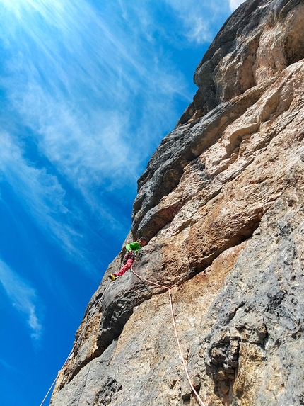 Colonne d’Ercole è una bellissima via, dove non si incontra nemmeno uno spit, complimenti ai primi salitori! Un grazie di cuore al team del Rifugio Tissi per la calorosa accoglienza!