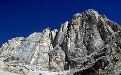Questa la breve cronaca che ci ha inviato Marco sulla sua 'corsa': "Ieri, martedì 1/08, sono riuscito a realizzare un grande progetto al quale era un po' di tempo che pensavo. In giornata, in 14 ore compresi gli spostamenti, ho concatenato le vie: Vinatzer/Messner alla parete Sud della Marmolada (in 2 ore e 40'), via Solleder alla Nord Ovest della Civetta (in 2 ore e 15'), via Gilberti allo Spigolo nord dell'Agner (in 3 ore e 25'). Per gli spostamenti ho utilizzato la moto e la bicicletta. Ho attaccato per prima la Vinatzer alle 5,15 e alle 19,15 circa ero in cima all'Agner. A valle ho avuto l'aiuto logistico di due amici che mi hanno spostato i mezzi a due ruote. Gli unici problemi li ho incontrati nella parte finale della Solleder a causa della presenza di ghiaccio e neve, mentre per il resto le condizioni erano buone eccetto un pò di bagnato nei primi tiri della Vinatzer e sempre della Solleder. Sono molto felice per questo concatenamento: era una nuova esperienza che volevo 'assaggiare' mettendomi anche alla prova in una situazione completamente all'opposto della mia invernale in Civetta, e lasciamelo dire: oggi, ripensandoci dopo averci dormito su, sono convinto di avere fatto proprio una cosa bella " | ![]() (la parete Sud della Marmolada dove corre la via Vinatzer/Messner percorsa da Marco Anghileri in 2h 40' - foto F. Piardi) ![]() (La Nord Ovest della Civetta salita da Marco Anghileri in 2h 15' - foto F. Tremolada) |