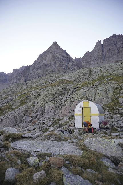 Laggiù un po' timido e inosservato si erge il Monte Nero. Non si impone come il Becco di Valsoera o il Becco della Tribolazione, ma rimane riservato e lontano, al centro del Vallone. La forma di questo picco mi ha attratto da quando ho scovato l'immagine per la prima volta nell'opuscolo del Piantonetto, la parete ripida e verticale è interrotta da un enorme cengia diagonale, un bellissimo prato sospeso a 3300 mt. Sotto di esso una piccola scatola di latta può accogliere gli avventurieri, il Bivacco Carpano appare lungo l'avvicinamento, quando meno te l'aspetti sbuca dietro a un roccione e subito lo puoi toccare.