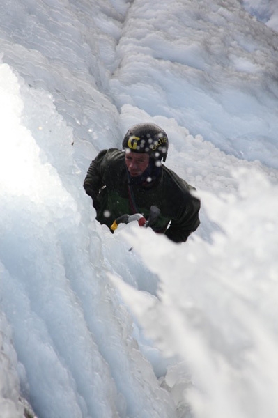 Su UKclimbing, Birkett ha raccontato com'è andata sui tiri superiori, confermando ancora una volta di essere un climber dai nervi saldi ma, se ce ne fosse ancora bisogno, anche l'estrema difficoltà e rischio di quest'arrampicata su ghiaccio sottilissimo: "Sono salito lentamente, squilibrando persino un exentic tra le protuberanze di ghiaccio per convincermi che avevo messo delle protezioni. Il ghiaccio era così sottile che non ho potuto batterlo più di una volta per ciascun gancio, altrimenti non ne sarebbe rimasto abbastanza per salire. Infine, appena sotto la stalattite, sono riuscito a piantare un paio di chiodi da ghiaccio che mi hanno fatto sentir molto meglio per l'ultimo tratto ripido fino in sosta. Ho assicurato Andy, poi lui ha salito l'ultimo tiro, perché io ne avevo ormai abbastanza. Andy l'ha fatto bene e ben presto siamo sbucati in cima."