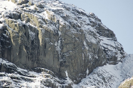 Dave Birkett, da molti anni uno dei più forti, attivi e talentuosi climbers a 360° della Gran Bretagna, ha sfruttato le strepitose condizioni di quest'inverno nel Lake District - la bellissima zona dei laghi nel nord dell'Inghilterra – per salire in due round successivi "Never Say Never Ever" (VIII 8 o E7 5c) sulla parete est dello Scafell. Una delle montagne più emblematiche di tutta l'Inghilterra ma anche, e non casualmente, la montagna a cui Birkett è più legato.