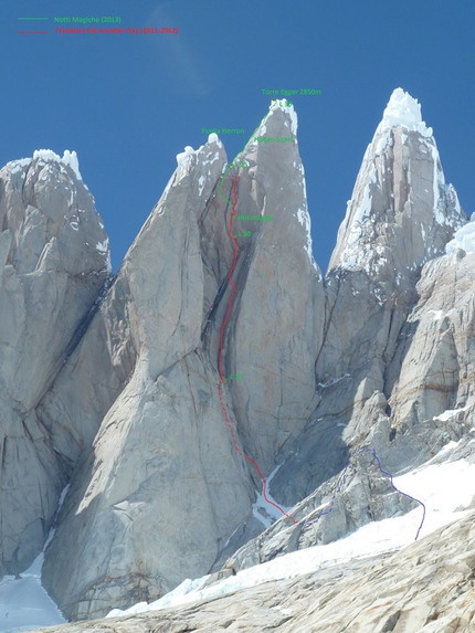 "Una parete difficile, pericolosa. Che pochi avevano tentato negli anni precedenti." Ecco come fino al 2010 si presentava la ovest della Torre Egger, una delle più belle guglie della Patagonia, sorella minore del più celebre Cerro Torre. Poi in quell’anno i Ragni di Lecco hanno dato vita, con Matteo Della Bordella e Matteo Bernasconi, all’ambizioso progetto di salire quella che veniva definita come ultima grande parete ancora inviolata della zona. I due hanno lottato nella stagione 2010/11 e 2011/12, poi nel 2013 si è aggiunto anche Luca Schiera. Com’è noto, dopo tre anni di battaglia Della Bordella e Schiera hanno raggiunto la cima della Torre Egger il 2 marzo 2013, pochi giorni dopo il rientro a casa di Bernasconi. La via di quasi 1000 metri si chiama Notti Magiche e questa è la sua storia.
