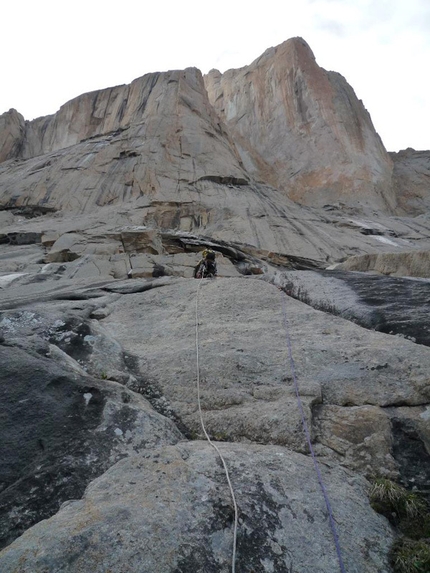 La lunga giornata si è conclusa con un brutto bivacco ed una notte insonne. Il lungo giorno seguente è stato caratterizzato da forti nevicate e arrampicata impegnativa per camini ghiacciati, fino al raggiungimento della cima del pilastro. Proprio mentre si stavano preparando per un altro bivacco i due hanno perso il fornello.