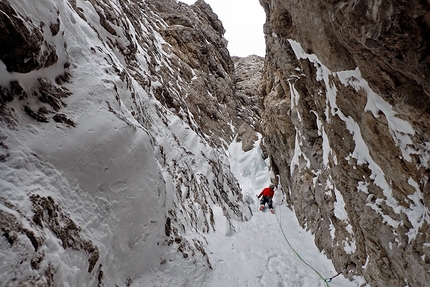 Il trio non ha lasciato nessun materiale in parete, mentre sul quarto tiro hanno trovato una sosta d’abbandono ed un chiodo, "risalenti probabilmente ad un tentativo precedente o ad una via estiva." Maggiori dettagli seguiranno
