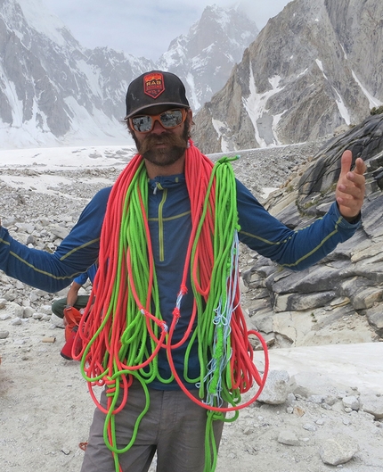 Già nel 2015 avevano tentato l’inviolata parete nord dell’Ogre 2 (6,980m). L’epilogo della loro avventura, era stato una sorta di miracolo: Adamson si era rotto una gamba poche centinaia di metri sotto la cima. Come non bastasse durante la già difficile ritirata, mentre Dempster si stava calando, si è rotta la sosta con Abalakov ed entrambi sono caduti per quasi 100m sul ghiacciaio sottostante. Erano sopravvissuti per miracolo. Lo stesso che servirebbe adesso.