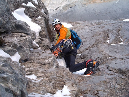 La via fa parte della storia dell'alpinismo. Mi immagino come negli anni trenta i ragazzi hanno tentato la parete. Poi la salita di Heckmair nel ‘38 è semplicemente incredibile, solo per aver individuato tutta la linea di salita. Poi aggiungi anche come Heckmair ha salito le sezioni in arrampicata… Follia. Oggi giorno la parete rimane molto impegnativa, e anche se i passaggi più difficile sono soltanto 5+, ti fa davvero sudare...