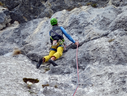 Questa salita non è “l’ultimo problema alpinistico” ed è improbabile diventi una “classica”, non fosse altro che per quella ora e mezza di ripido bosco che ti porta boccheggiante alla base della parete. Una volta giunti all’attacco ci si accorge poi che le rocce tutto intorno sono piene di “verdura” e le foto con posa da copertina patinata decisamente non rendono la plasticità del gesto.